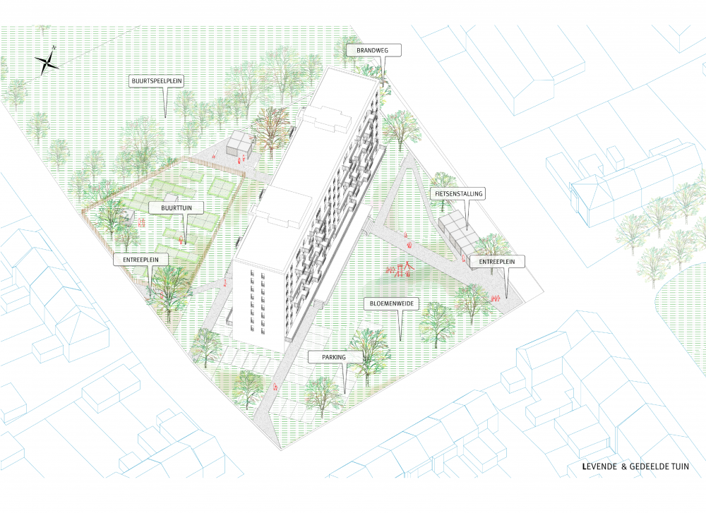 | programma | revitaliseren van een sociaal woongebouw (64 units) en de omliggende publieke ruimte | |