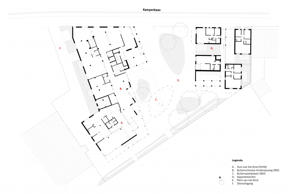 De ontwikkeling binnen de projectzone ‘Aen De Schans’ zet in op 3 duidelijke figuren: het Plein van het Kind, een woongebouw en het Huis van het Kind gecombineerd met een seniorie.
