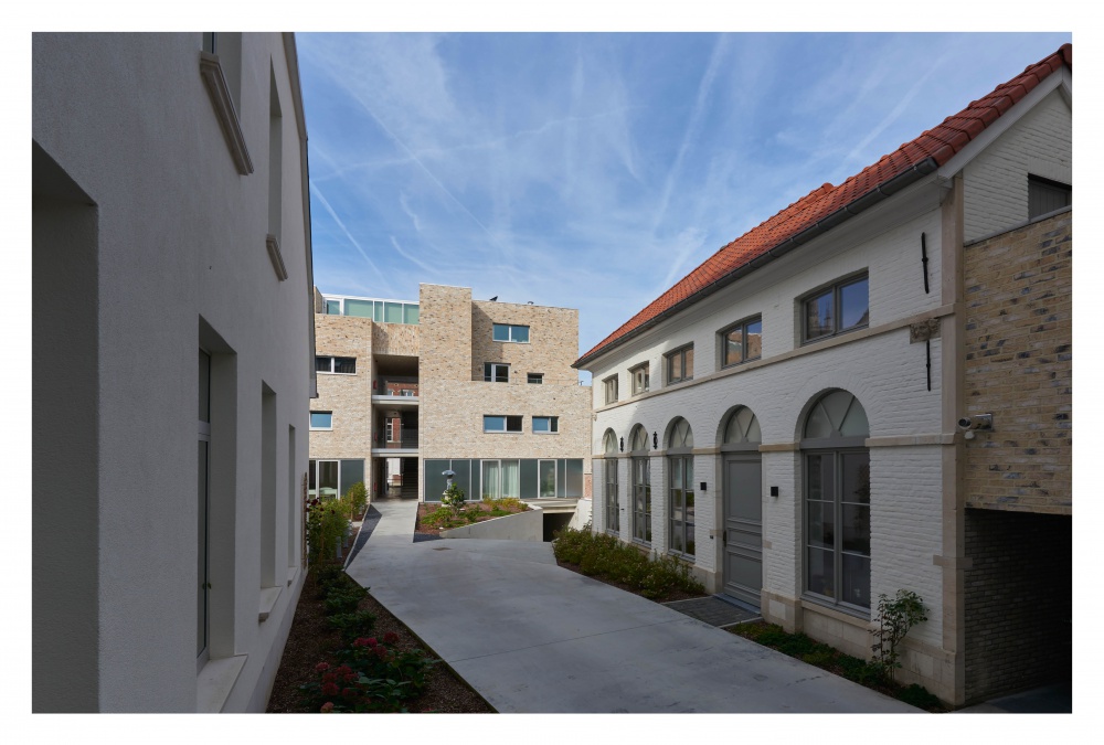 Een circulatiestrip initieert de overgang tussen de beslotenheid van het wonen in de Vaartstraat en een open uitzicht aan de Dijle. Dit centraal pad structureert en verzamelt. Het organiseert een architecturale wandeling langs een teruggetrokken inkomportaal in de renovatie, een ‘geborgen’ stadstuin en een uitgewerkte trappenpartij in de nieuwbouw om vervolgens te eindigen in een gemeenschappelijk terras aan de oever van de Dijle.