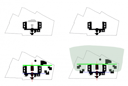 We introduceren 2 aparte leefpavilioenen, een sportschuur en een werkatelier. De te renoveren gebouwen worden ingericht als inkompavilioen en administratieve zones.