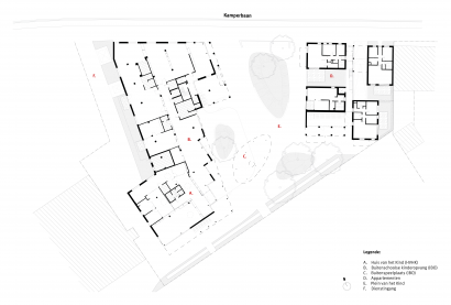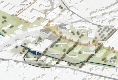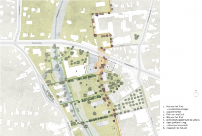 ontwerp dorpslandschap nieuwbouw Huis van het Kind 20 assistentiewoningen en 15 appartementen inrichting Huis van het Kind |