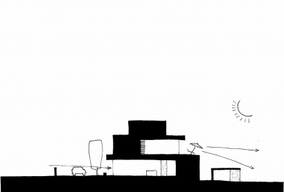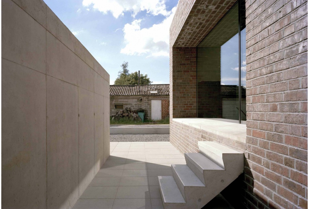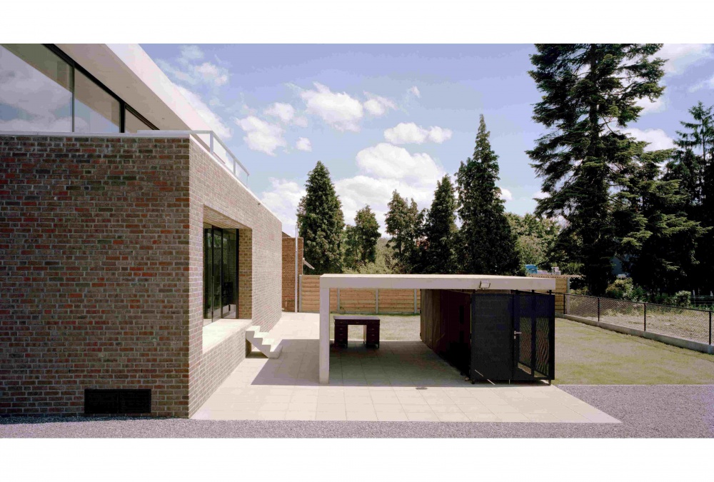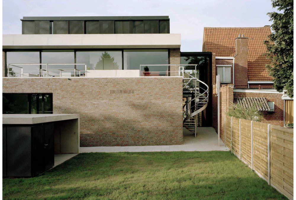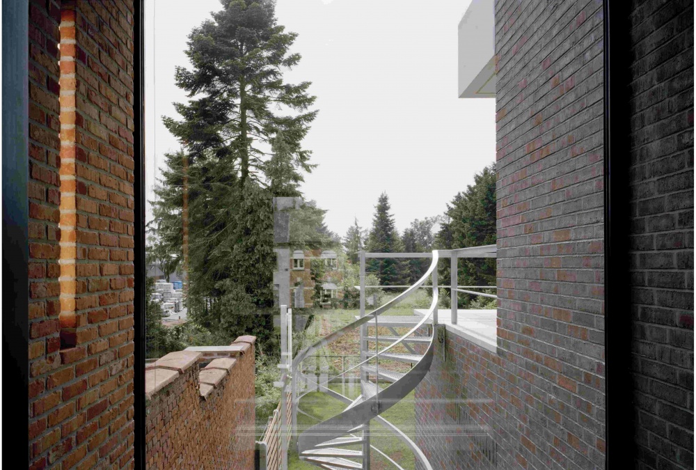 In deze anarchie eist het project zijn eigen plek op in de omgeving en presenteert het zich als een vrijstaand volume met open en gesloten vlakken. Het tussen-geschoven glazen volume sluit respectvol aan met de spitse wachtgevel van een bestaande gevel.