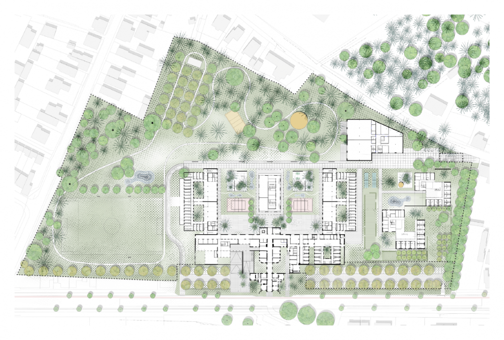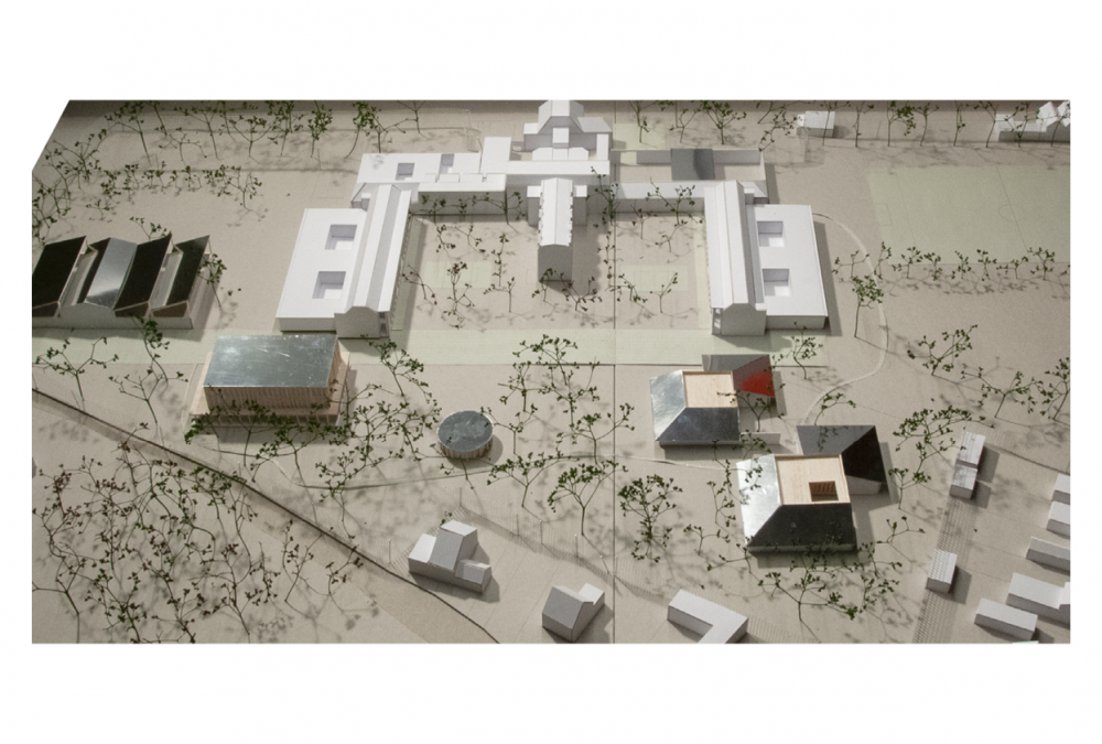 We introduceren 2 aparte leefpavilioenen, een sportschuur en een werkatelier. De te renoveren gebouwen worden ingericht als inkompavilioen en administratieve zones.
