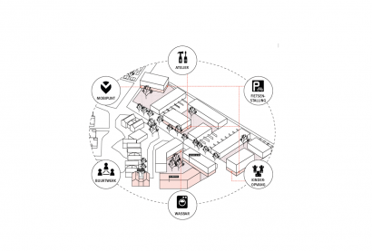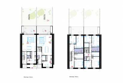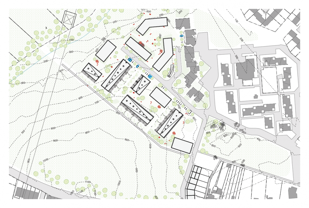 Wonen in clusters rond binnenhoven vormt het basisidee. Daarbij wordt erg ingezet op collectiviteit. Het landschap is collectief landschap: het moet kunnen doorlopen en iedereen moet ervan kunnen profiteren. De clusters worden daarom uitgedacht als poreuze clusters. Ze trekken het landschap binnen door te werken met verrassende doorzichten, doorwaadbare binnenhoven en fysieke connecties. De clusters worden gedraaid ten opzichte van elkaar, er is afwisseling tussen twee of drie bouwlagen en er wordt specifiek ingespeeld op de straathoeken. Binnen elke cluster worden de woonvolumes geschrankt, waardoor een binnenhof een constellatie wordt van één grote ruimte en twee kleinere. Kortom, elke cluster krijgt zijn eigen karakter.